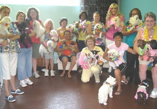 On August 7th, Mom and I got together with about 20 of my doggie friends in the Smyrna Toy Dog Meet-Up Group for a Paw-lynesian Pawty. I wore my grass skirt and pink flower lei. I also wore a pink flower in my fur and on my paw. I looked very tropical. I had a great time playing with everyone and especially enjoyed seeing Jen, the Japanese Chin. This is a photo of our Moms chatting.